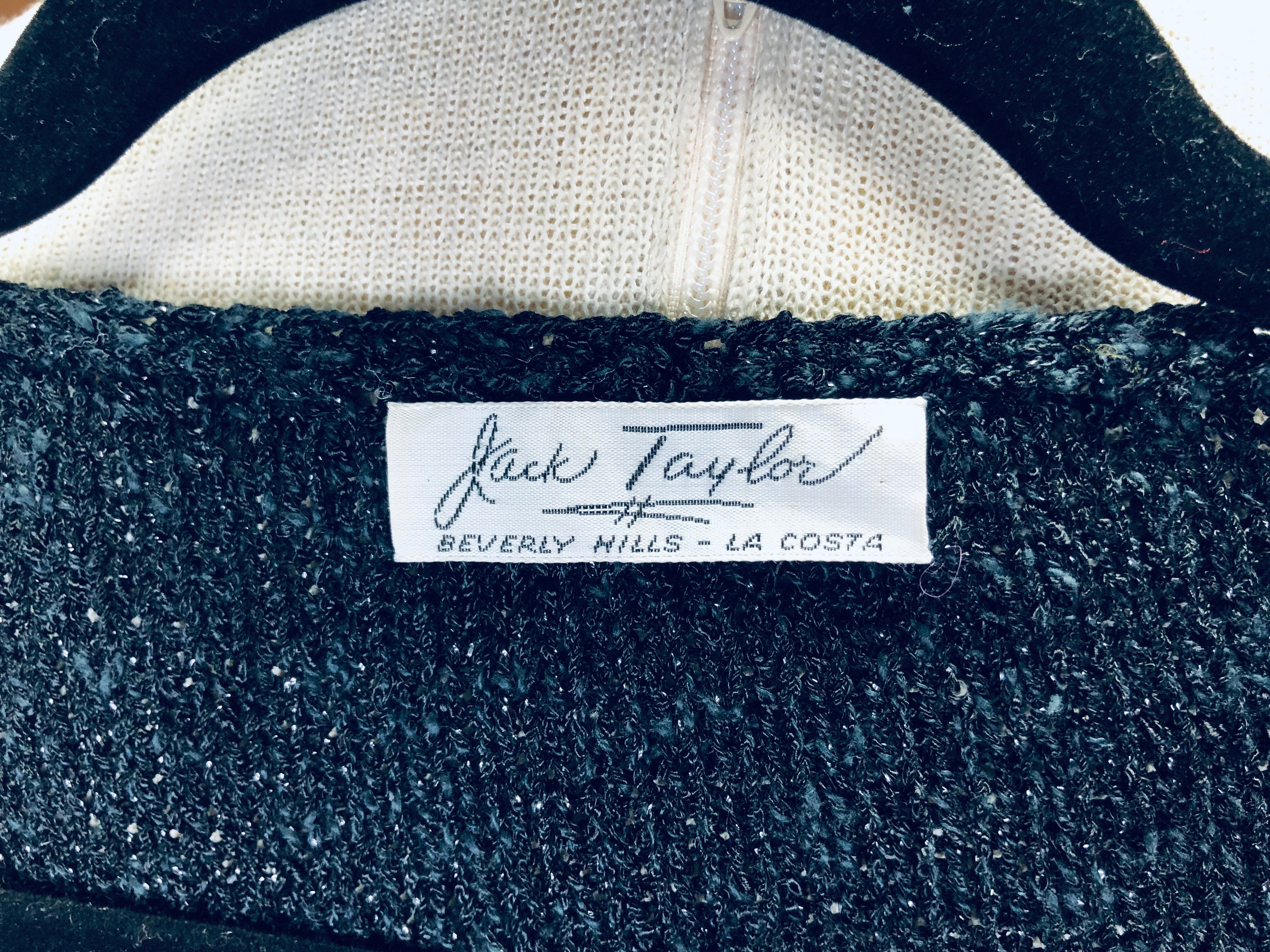 360º diagonal black sequin stripe, ribbed hip/arm cuffs, tinsel yarn for slight shine