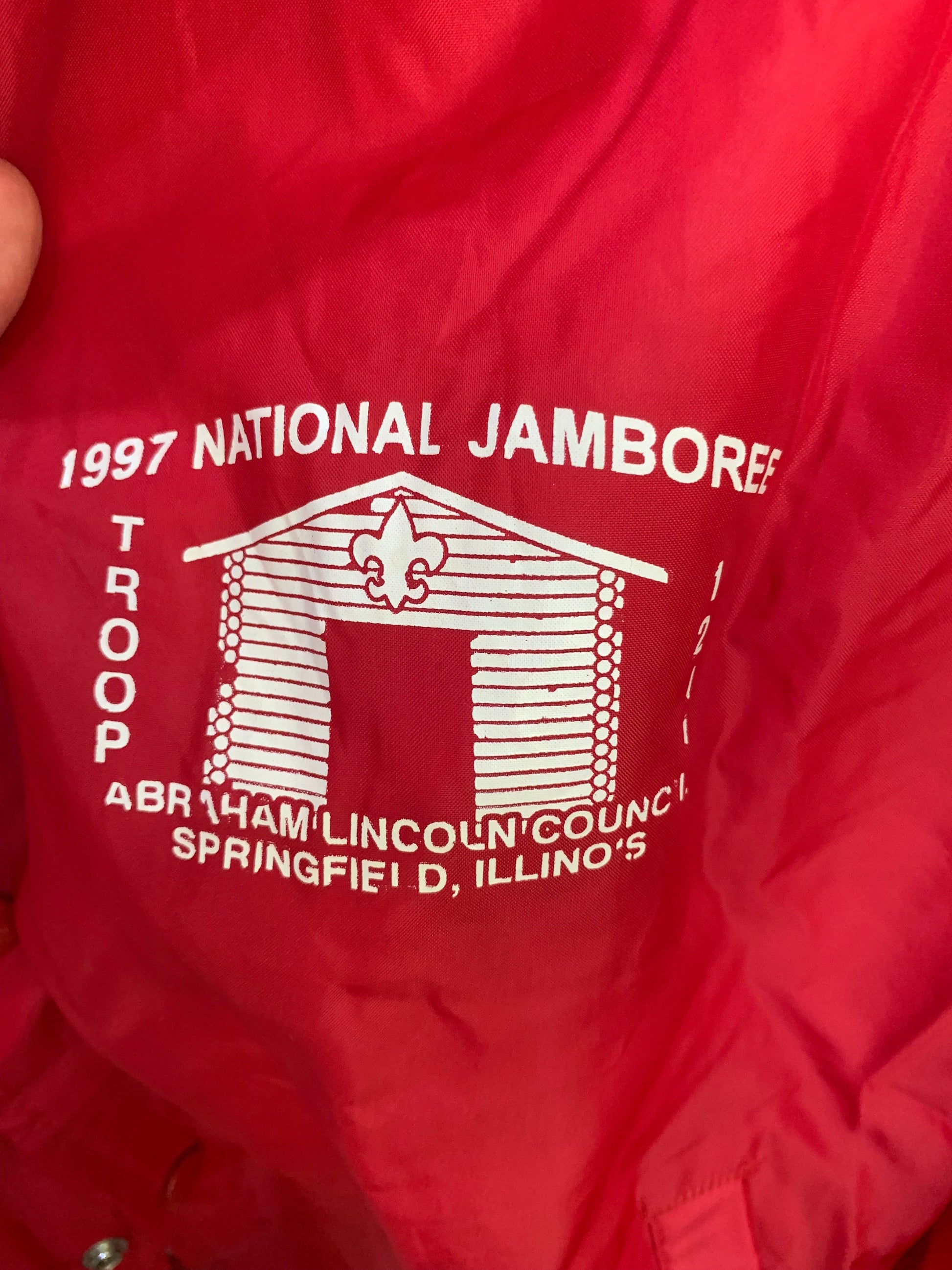 Text: 1997 National Jamboree/Troop 1211/ Abraham Lincoln Council Springfield Illinois